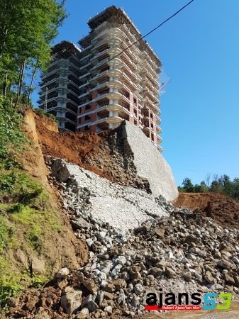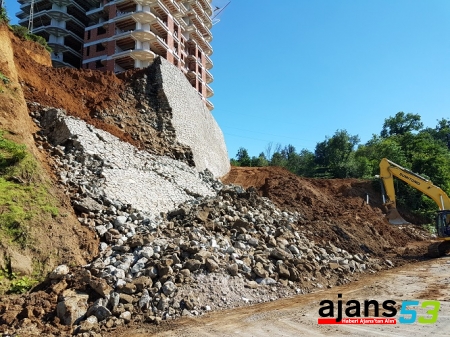 Rize'de bugün bir inşaatın istinat duvarı çöktü.