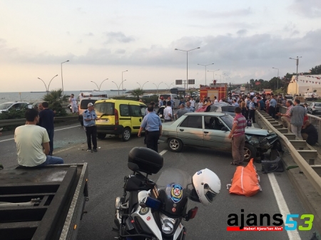 Alınan bilgiye göre, Ortahisar ilçesine bağlı Yeni Mahalle Sahil Yolu'ndan Akçaabat istikameti giden sürücüsü henüz belirlenemeyen 61 AJ 776 plakalı otomobil, sürücünün direksiyon hakimiyetini kaybetmesi sonucu orta refüjden karşı şeride geçerek, karşı yönden gelen Osman Zeki Çırak yönetimindeki 61 T 0077 plakalı ticari taksiye çarptı. Bu sırada aynı yönden gelen 61 AP 211 plakalı otomobil de duramayıp bu iki araca çarptı.