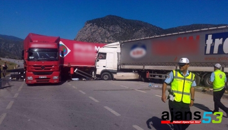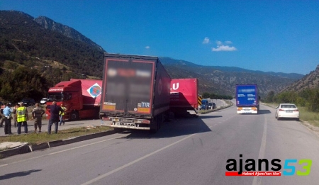 Kaza, İstanbul-Samsun karayolu üzerinde Hacıhamza mevkii yakınlarında meydana geldi. Edinilen bilgilere göre, İstanbul istikametinden Samsun istikametine gitmekte olan Azmi Y.(56) yönetimindeki 08 KA 6958 plakalı ve Lütfü Ö.(49) yönetimindeki 08 KA 6962 plaklı iki TIR, Hacıhamza Mevkii yakınlarına geldikleri sırada bilinmeyen bir nedenle çarpıştı. Kazanın etkisiyle TIR sürücüleri Azmi Y., Lütfü Ö. ile birlikte TIR’da bulunan Sunay Y., Erdal A. ve İsmail Hakkı C. yaralandı. Yaralılara ilk müdahaleleri olay yerinde yapılarak ambulanslarla Osmancık Devlet Hastanesi’ne kaldırıldı. Kazanın ardından TIR’da bulunan demir boruların yola devrilmesiyle D-100 karayolunun İstanbul-Samsun istikameti bir süre trafiğe kapatılarak, tahliye yoldan trafik akışı sağlandı.