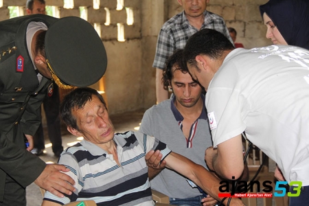 Fenalaşan şehidin babası Hasan Akın'a, sağlık ekibi müdahale etti.