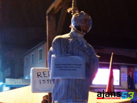 Demokrasi nöbeti Rize'nin Çayeli ilçesinde devam ediyor. Bir grup genç Fethullah Gülen'in maketini ilçe meydanında astı.