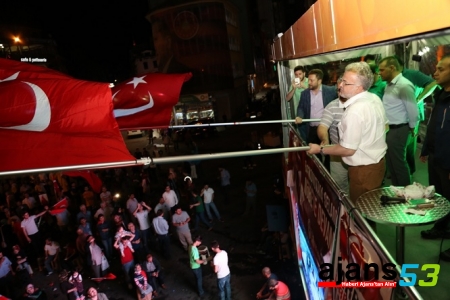 Mikrofonda tekbir getiren Başkan Kasap’a vatandaşlar eşlik etti. Türk Bayrağını dalgalandıran Belediye Başkanı Kasap, yapmış olduğu kısa selamlama konuşmasında vatandaşlara, “Demokrasi nöbetinde Rize Belediyesi’nin hizmetlerinden memnun olup olmadıklarını sordu. Vatandaşlardan memnuniyet cevabı alan Başkan Kasap, Cumhurbaşkanı Recep Tayyip Erdoğan’ın ikinci bir emrine kadar Demokrasi nöbetine hep birlikte devam edeceklerini” söyledi.