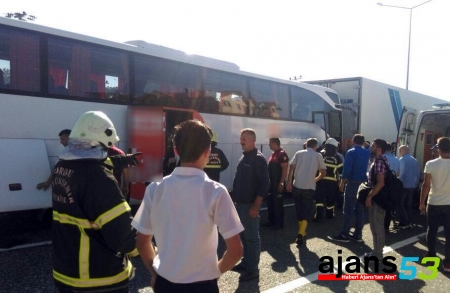 Kaza, Ünye-Fatsa Devlet Sahil Yolu Yüceler mevkisinde saat 16.30 sıralarında meydana geldi. Edinilen bilgiye göre, Rize’den İstanbul’a gitmekte olan İbrahim Tüfek idaresindeki 53 HP 311 plakalı yolcu otobüsü, önünde seyir eden Sabri Cebeci’nin kullandığı 61 S 1215 plakalı yolcu otobüsüne arkadan çarptı. Otobüs de önünde seyir eden ve Azerbaycan’dan İstanbul’a gitmekte olan Vasyı Kozakevych (45) yönetimindeki AI 5233 CH Azerbaycan plakalı TIR’a çarptı. Zincirleme kazanın ardından olay yerine çok sayıda ambulans ile itfaiye ve polis ekipleri sevk edildi. Araçta sıkışan otobüs sürücüsü Sabri Cebeci, itfaiye ekiplerince sıkıştığı yerden kurtarıldı. Kazada yaralanan yolculardan 7’si Ünye Devlet Hastanesi’ne, diğer 7 yaralı ise Ünye’deki özel bir hastaneye kaldırıldı. Hastanede tedavi altına alınan yaralılardan otobüs sürücüsü Sabri Cebeci’nin durumunun ağır olduğu, diğer yaralıların hayati tehlikesinin bulunmadığı öğrenildi. Kazada yaralananların isimleri şöyle: