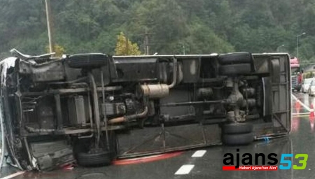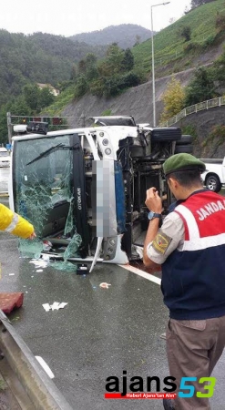Kaza, ilçeye bağlı Çamburnu mevkiinde meydana geldi. Edinilen bilgiye göre, Hopa’dan Trabzon’a seyir halinde bulunan Emrah R. yönetimindeki 61 S 1112 plakalı yolcu otobüsü, Çamburnu mevkiinde yağmur dolayısıyla kayganlaşan yolda sürücüsünün direksiyon hakimiyetini kaybetmesi sonucu yan yattı.