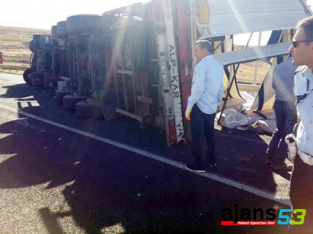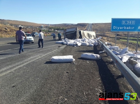 Edinilen bilgilere göre, Şanlıurfa istikametinden Diyarbakır yönüne ilerleyen Faruk Şahin yönetimindeki 33 DHK 69 plakalı tır, Selimpınar Mahallesi yakınlarında sürücünün direksiyon hakimiyetini yitirmesi sonucu karayolunun 5'inci kilometresinde devrildi.