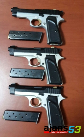 Edinilen bilgiye göre, Rize’nin Çayeli ilçesinde yol denetimi yapan jandarma ekipleri, içerisinde 3 kişinin bulunduğu bir aracı durdurdu. Araçta yapılan aramada el yapımı oldukları tespit edilen 3 adet tabanca bulundu. S.Y, H.K ve M.T adlı şahıslad “6136 sayılı ateşli silahlar kanununa muhalefet” suçlaması ile gözaltına alındı. Aracın Sivas’a gittiği öğrenildi. Olayla ilgili inceleme sürüyor.