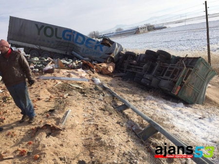 Kaza Sungurlu Kırıkkale karayolunun 7'nci kilometresinde meydana geldi. Edinilen bilgiye göre, Ankara'dan Sungurlu istikametine seyreden İ.S. yönetimindeki 53 DN 477 plakalı sebze yüklü tıra, sürücüsünün direksiyon hakimiyetini kaybetmesi nedeniyle aynı istikamette seyreden E.S. idaresindeki 19 DZ 400 plakalı kepek yüklü kamyon çarptı. Kazada ortalık adeta savaş alanına dönerken iki tırın şoförü de yaralandı.