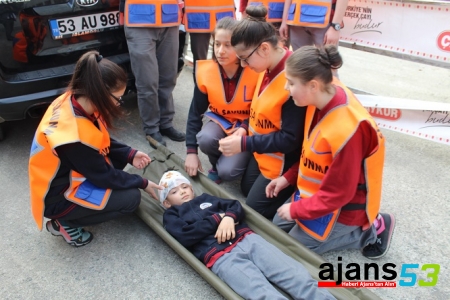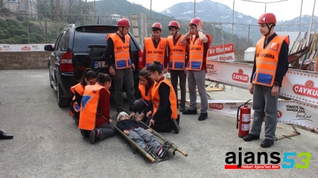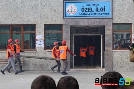 Rize'de Sivil Savunma etkinlikleri kapsamında bir ilköğretim okulunda yangın tatbikatı düzenlendi.