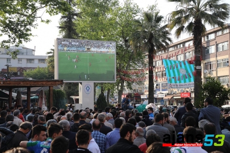 Rize'deki Çaykur Rizespor taraftarları Ümraniyespor maçını, Memiş Ağa Parkı'ndaki dev ekrandan izledi. Maçtan sonra taraftarlar büyük sevinç yaşadı. Şampiyonluk coşkusu yaşayan taraftarlar, araçları ile şehir turu atarak takım bayraklarını salladı.