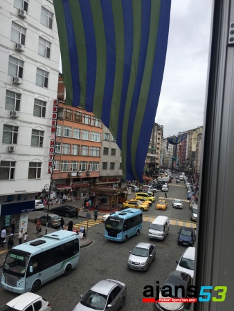 Rize Cumhuriyet caddesinde boydan boya asılı olan Çaykur Rizespor’un yırtılmış bayrağına Rizespor taraftarlarından haklı tepki var.