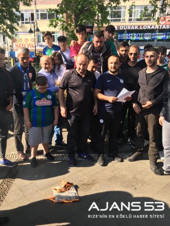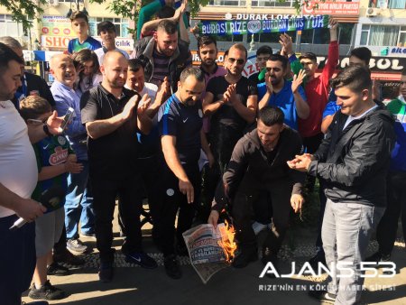 Çaykur Rizespor taraftarı, Trabzonspor maçı sonrası Karadeniz gazatesinin attığı manşet sonrası bu gazeteyi protosto etti ve gazeteyi Rize meydanında yaktı!..