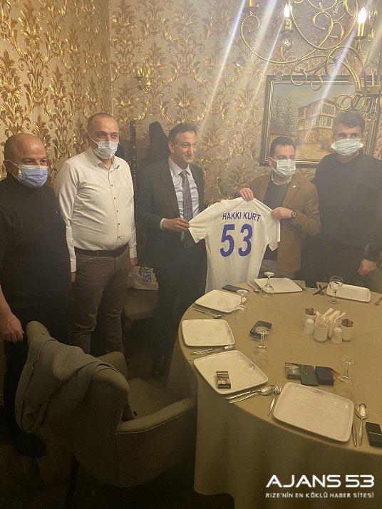 Çaykur Rizespor yönetim kurulu üyeleri Rizeli iş adamı Hakkı Kurt’a 53 numaralı forma hediye ederek teşekkür ettiler.