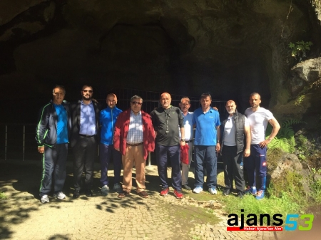 Çaykur Rizespor teknik kadrosu, İyidere ilçesi Çiftlik köyündeki Pileki Mağarası'na moral depoladı..