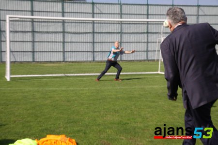 Hafta sonu oynanacak olan Eskişehirspor maçı öncesi kulübe gelerek teknik kadro ve futbolculara moral veren Rize Belediye Başkanı Reşat Kasap, gazetecileri kırmayarak teknik kadro ve Rizespor’lu futbolcularının bakışları altında kaleye geçti.