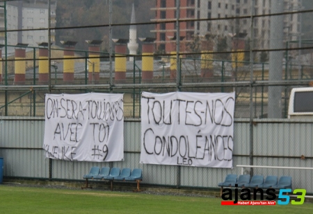 Çaykur Rizespor taraftarlar, eşinin geçirdiği kaza sonucu henüz doğmamış ikiz bebeklerini kaybeden golcü oyuncu Kweuke'ye, Fransızca "Geçmiş olsun, seninleyiz Kweuke" yazılı pankartlarla moral verdiler.