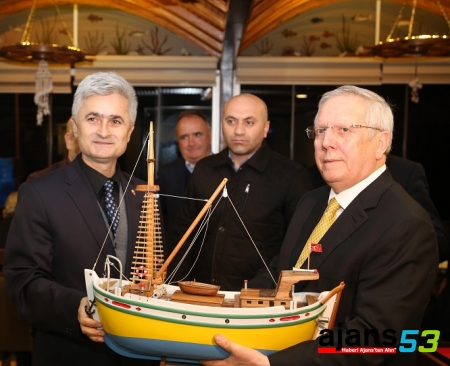 Çillioğlu, Yıldırım'a el yapımı gemi maketi, Yıldırım da Çillioğlu'na futbolcuların imzaladığı formayı hediye etti.