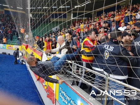 Ancak; Esas problem, tribünlerde yaşanmış ve faciaya dönecek olaylar bazı tesadüflerle engellenmiştir.10-15 saat otobüs yolculuğu ile Kayseri'den-Rize'ye gelen 300-400 Kayserispor taraftarının önce tribüne alınışı sırasında zorluklar çıkarılmış, sonra Kayserispor teknik direktörü Hikmet Karaman'ın yedek kulübesine gelmesiyle birlikte bütün stadın toplu halde, dakikalarca ağıza alınmayacak küfür ve hakaretleriyle ortam iyice gerilmiştir. Maçın başlamasıyla, futbola dönülür ve bu sıkıntı biter diye düşünürken 15-20'inci dakikada, misafir tribününe, her iki tarafında bulunan ev sahibi taraftarlarınca her türlü malzeme atılmaya başlamış, bu arada Hikmet hocada protokolün bulunduğu tribün tarafından nasibini almıştır. Komşu 2 bölüm tarafından sıkıştırılan ve ablukaya alınan misafir takım taraftarları, kendilerini korumakla görevli polislerin geldiğini görünce biraz rahatlamış ancak olmadık bir uygulamayla karşılaşmışlardır. Güvenliği sağlamakla görevli emniyet mensupları ,misafir tribününe girer girmez taraftarlara vurmaya başlamış, jop, gaz vs ellerinde ne varsa denemişlerdir. Bu esnada misafir taraftar tribününde oturan Kayseri milletvekilimiz ve il başkanımızın ne yapıyorsunuz? böyle uygulama olur mu? sorularına karşılık, polisin cevabı milletvekilinden " kimlik sormak " olmuştur. Vekilin kimliğini göstermesi sonucu "Sizin burada olduğunuzu bilmiyorduk, özür vs gibi olayları telafi edemeyecek söylemler olsa da, taraftarlarımızdan yaralanmalar olmuş ve saha dışındaki bu olaylar, tabii ki sahayı da etkilemiştir. Bizler eyvah! acaba olaylar nereye varacak diye endişelenirken olayları izleyen diğer tribünlerin tamamı da , vur, kır, parçala vs sloganlarla saldırıya destek vermişlerdir. Bu taraftarların bu hale nasıl getirildiğini, geçtiğimiz yıllarda benzeri olayların yaşanmadığı bu güzel kentimizde değişimin ne olduğunun incelenmesini yetkililerin dikkatine sunuyoruz.