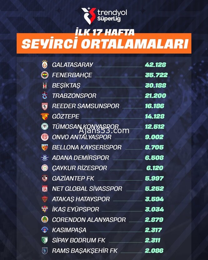 6 bin 120 ortalaması ile bu sezon kendi sahasında oynadığı maçlarda 11. sırada yer alan temsilcimizde ligin ikinci devresinde tribünlerin daha da çok dolması adına yönetimin bir takım çalışmalar yapacağı biliniyor.