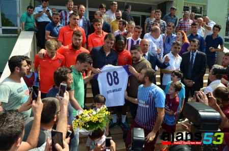 Spor Toto Süper Lig ekiplerinden Çaykur Rizespor ile hazırlık maçı öncesi Artvin'in Hopa ilçesine gelen Trabzonspor'da kulüp genel sekreteri Köksal Güney, divan başkanı Ali Sürmen, yöneticiler Engin Hacısalihoğlu, Ömer Demir, sportif direktör Süleyman Hurma, teknik direktör Arveladze, futbolcular Aykut Demir, Cavanda, Marko Marin, Alper Uludağ ve Muhammet Beşir, Hopa Kaymakamlığını ziyaret etti.