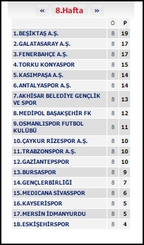 Berabere biten müsabakanın olmadığı 8. haftada Antalyaspor, Fenerbahçe ve Medipol Başakşehir deplasmanda kazandı. Trabzonspor'u 3-2 mağlup eden Mersin İdmanyurdu'nun ilk 3 puanını aldığı haftada Medicana Sivasspor bu hafta da galibiyet sevinci yaşayamadı.