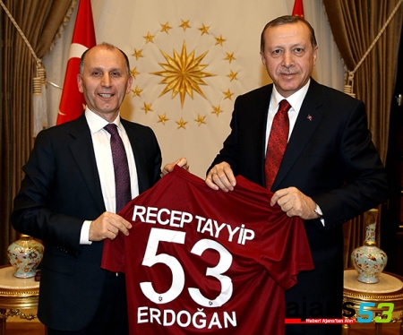 Görüşme sonrası Başkanımız Muharrem Usta, Cumhurbaşkanımız Sayın Recep Tayyip Erdoğan’a üzerinde isminin yazılı olduğu 53 numaralı formamızı hediye etti.