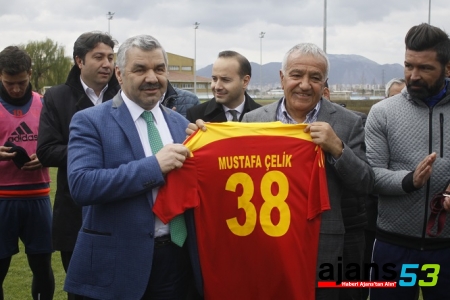 Kayserispor Başkanı Recep Mamur, ziyaretin anısına Çelik'e üzerinde isminin yazdığı Kayserispor forması hediye etti.