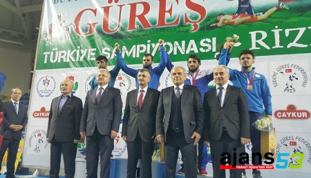 Rize’de Cumartesi tamamlanacak olan, Greko-Romen Güreş Türkiye Şampiyonasında heyecan devam ediyor. Gençlik ve Spor Bakanı, Güreş Federasyonu Eski Başkanı Osman Aşkın Bak yarışmalarının ikinci gününü müsabakalarını birkaç saat izledikten sonra sıkletinde şampiyonu sporculara, Rize Valisi Erdoğan Bektaş, Rize Belediye Başkanı Prof. Dr. Reşat Kasap, Türkiye Güreş Federasyonu Başkanı Musa Aydın ve protokoldeki diğer davetli bürokratlarla birlikte şampiyonluk madalyaları ile birlikte Çaykur’un sponsor olduğu şampiyonda, Çaykur Hediyelik çaylarını taktim ettiler.