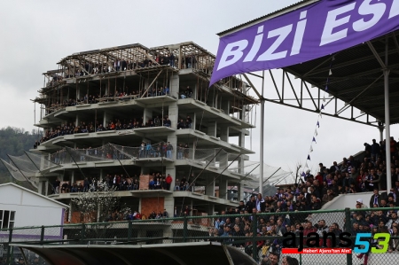 Çevre il ve ilçelerden güvenlik güçlerinin de görev aldığı karşılaşmayı, tribünlerdeki taraftarların yanı sıra çevredeki evlerin balkon ve terasları, karkas binalar ve ağaçlar üzerindeki binlerce Artvin Hopaspor taraftarı da takip etti.