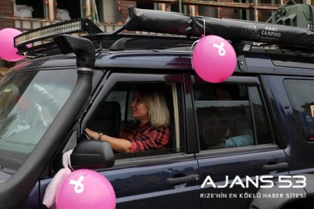 Rize'de off-road tutkunları, meme kanserinde erken teşhisin önemine dikkati çekmek için pembe balonlarla süsledikleri araçlarıyla konvoy oluşturdu.