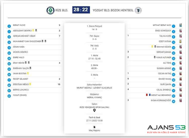 Türkiye Hentbol Federasyonu Erkekler 1. Lig A Grubu’nda mücadele eden Rize Belediyespor Erkekler Hentbol takımı ligin 6. haftasında evinde Yozgat Belediyesi Bozok Hentbol ile karşılaştı.