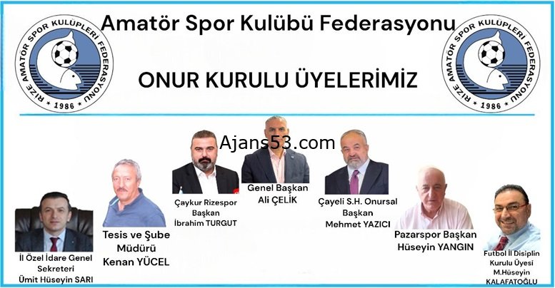 Yeni yönetimin onur kuruluna ; Ç.Rizespor Başkanı İbrahim Turgut, Smart Holding Çayelispor Onursal Başkanı Mehmet Yazıcı, Pazarspor eski Başkanı ve TFF yönetim kurulu yedek üyesi Hüseyin Yangın, İl Özel İdare genel sekreteri Ümit Hüseyin Sarı'da bulunuyor..
