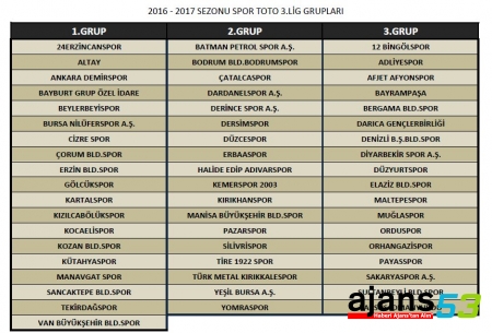 3. Lig gruplarında yer alan takımlar şöyle:
