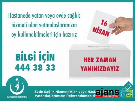 Ayrıca seçim günü olan 16 Nisan 2017 Pazar günü, oy kullanmaya karar veren vatandaşlarımız içinde aynı gün saat 16.00’a kadar evde sağlık hizmetleri koordinasyon merkezlerimiz bu numaralar ile açık tutularak hizmet vermeye devam edecektir.