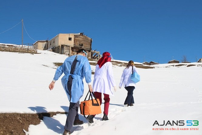 Filyasyon ve aşılama ekipleri, kentin en uzak ve yüzölçümü en büyük ilçelerinden İkizdere’de hava sıcaklığının eksilere düştüğü kırsal köylerde virüsün takibini yapıyor.