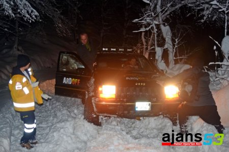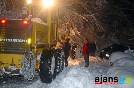 Fındıklı ilçesinde etkili kar yağışı nedeniyle yolu kapanan köyde mahsur kalan hamile kadın, 3 saatlik çalışmanın ardından hastaneye kaldırıldı.