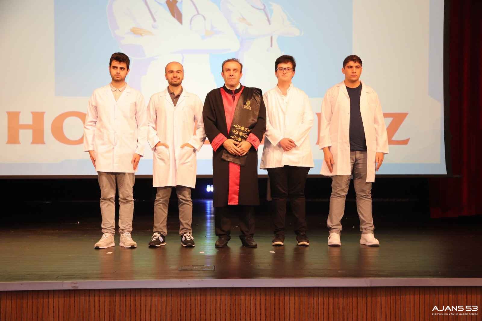 Açılış konuşmalarının ardından öğrencilere önlüklerini Rektör Prof. Dr. Yusuf Yılmaz, Tıp Fakültesi Dekanı Prof. Dr. Ömer Şatıroğlu ve akademisyenler giydirdi.