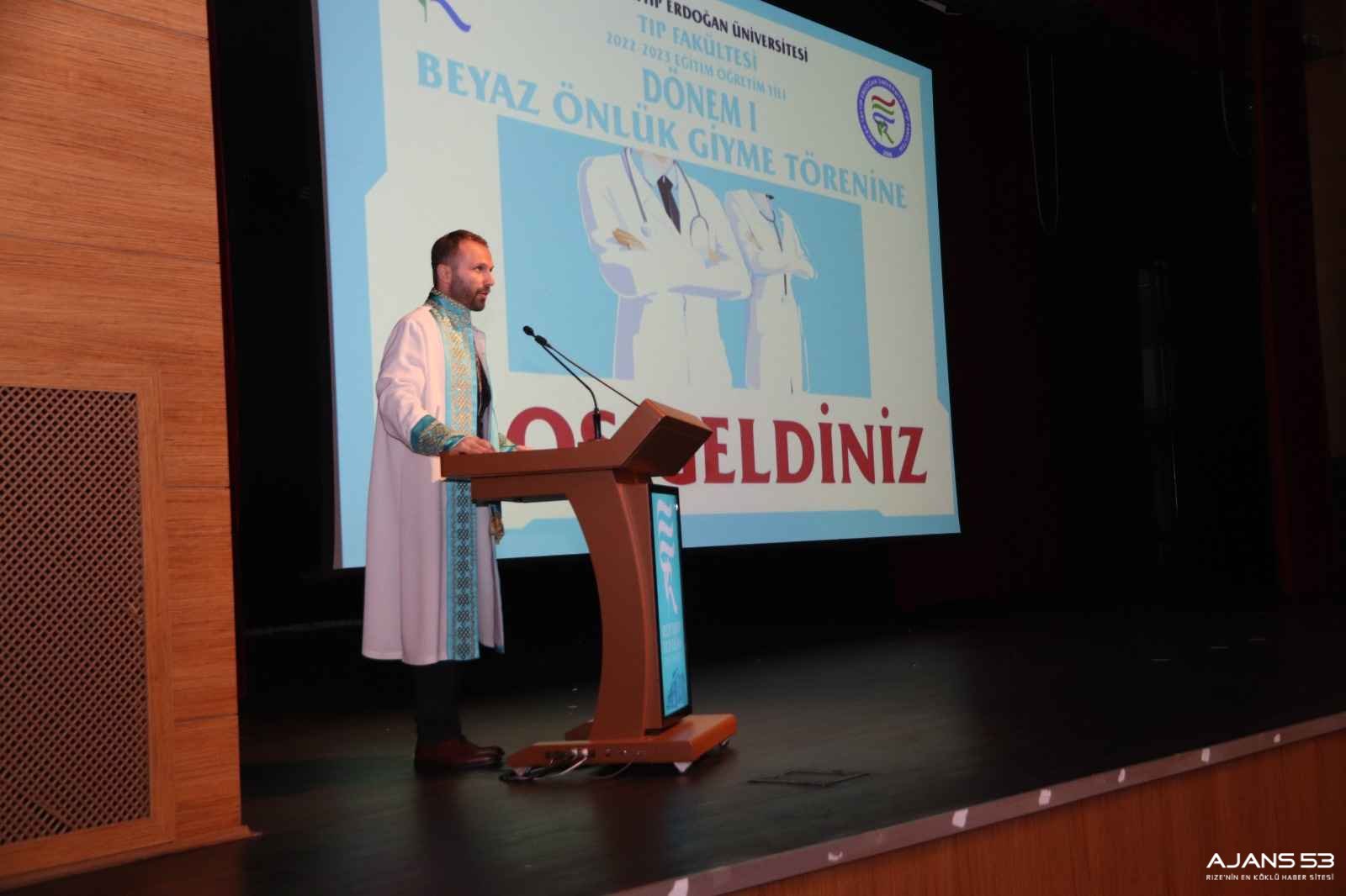 Recep Tayyip Erdoğan Üniversitesi (RTEÜ) Tıp Fakültesi tarafından birinci sınıf öğrencileri için Kongre ve Kültür Merkezi Konferans Salonu’nda 2022-2023 Akademik Yılı Beyaz Önlük Giyme Töreni düzenlendi.