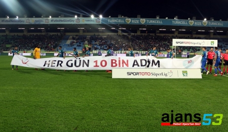 Süper Lig Turgay Şeren Sezonu 6. Hafta maçlarında futbolcular maça çıkarken “Her Gün 10 Bin Adım” sloganlı pankartları taşıyor. Çaykur Rizespor-Beşiktaş maçında sahaya bu pankartlarla çıkıldı.