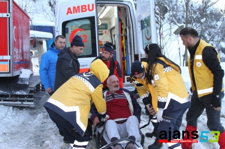Rize'de kar dolayısıyla yolu kapanan köyde rahatsızlanan Dursun Emin Algör, yaklaşık 8 saat süren çalışmanın ardından sağlık ekiplerince paletli ambulansla hastaneye götürüldü.