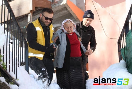 Pazar ilçesinde kar nedeniyle ulaşım sağlanamayan köyde rahatsızlanan böbrek hastası Rifkiye Birben, yaklaşık 5 saatlik çalışmanın ardından sağlık ekipleri ve köylüler tarafından kar paletli ambulansla taşınarak hastaneye götürüldü.