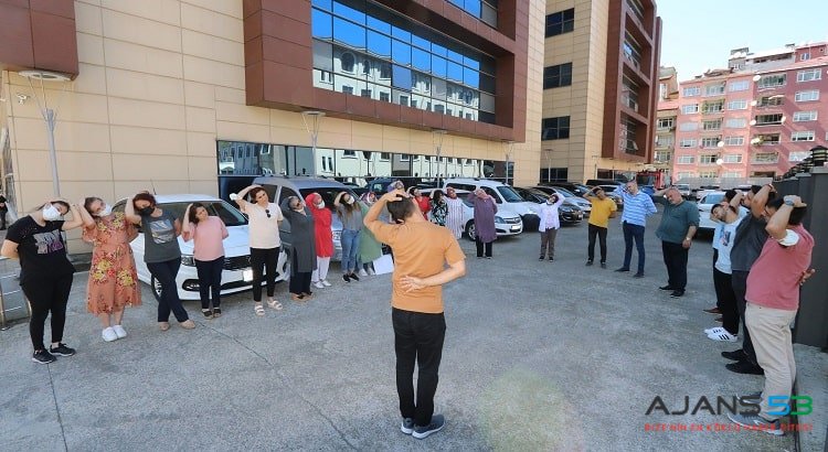 İl Sağlık Müdürlüğü ile Merkez Toplum Sağlığı Merkezi organizasyonuyla Fizyoterapist Oğulcan Uysal öncülüğünde gerçekleşen etkinlikte; önce genel bir bilgilendirme yapılmış ardından masa başı çalışma hayatının etkisiyle oluşan rahatsızlıklar (özellikle sırt ve boyun hastalıkları ) göz önüne alınarak hafif esneme ve germe hareketleri uygulanmıştır.