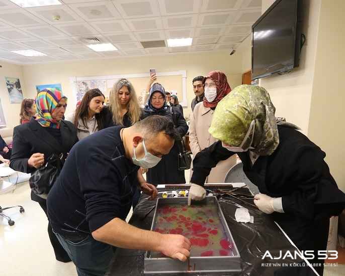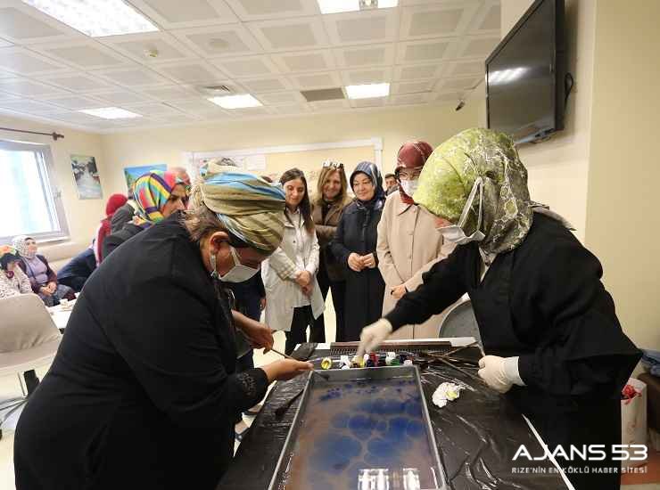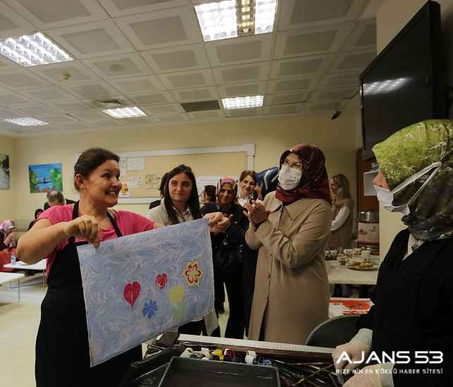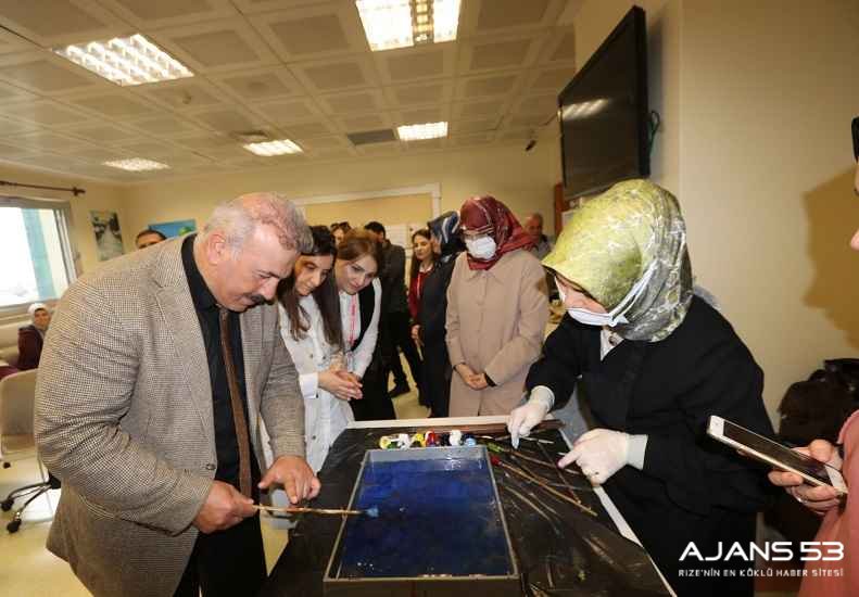 Rize Devlet Hastanesi Toplum Ruh Sağlığı Merkezinde tedavi gören hastalar, ebru sanatıyla kendilerini ifade etme imkânı buluyor.