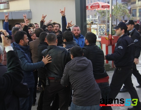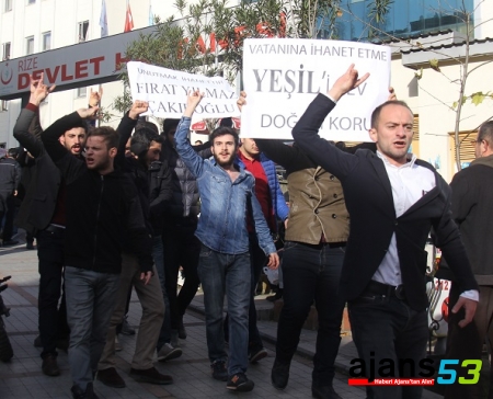 Rize’de KESK’e bağlı bir grup kamu çalışanı bugün Rize Devlet Hastanesi bahçesinde pankart ve dövizler açarak Güneydoğu Bölgesi’nde süren terörle mücadele faaliyetlerinin durdurulması talebi ile basın açıklaması düzenlediler. Basın açıklamasının okunduğu sırada olay yerine yaklaşan başka bir grup ise KESK üyelerinin üzerine yumurta atarak “Şehitler ölmez vatan bölünmez” şeklinde slogan attılar. Gruba polis müdahale etti. Bir kişi göz altına atınırken, grup daha sonra üzerinde “Vatanına ihanet etme, Yeşili sev doğayı koru”, “Unutmak ihanettir, Fırat Çakıroğlu” yazılı döviz açtılar. Grup slogan atarak olay yerinden ayrıldı. Basın açıklaması ise olay sonrası sona erdirildi.