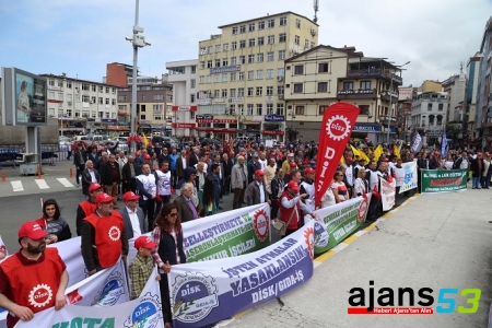 Rize'de "1 Mayıs Emek ve Dayanışma Günü" dolayısıyla bazı sivil toplum örgütleri ve siyasi parti üyelerinden oluşan grup, İsmail Kahraman Kültür Merkezi önünde bir araya geldi.