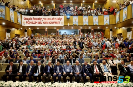Konuşmasında Rize’nin 16 Nisan halk oylamasında yüzde 76’lik bir evet oranıyla kendisini yakışan bir neticeyi ortaya koyduğunu kaydeden Erdoğan “Yeterli mi? Bak hemşerilerim yeterli görmüyor. Demek ki daha çok çalışacağız. 2019’a çok daha büyük bir gayretle girmemiz lazım. Bu halk oylaması ile birlikte geçtiğimiz yeni yönetim sisteminde çıta yükseldi. 2002 Kasım’ındaki seçimleri yüzde 34,4’lük bir oy oranıyla iktidara gelmiştik. Yeni sistemde başarı çıtası yüzde 50+1 oy. Şimdi kolay değil, daha zor. Çalışacağız. Siz zoru Allah’ın izniyle kolay kılacaksınız. Türkiye’nin karşı karşıya bulunduğu sıkıntıların üstesinden ancak böyle güçlü yönetimle gelinebileceğine inandığımız için bu sistemi getirdik. Aslında yüzde 34 ile yüzde 50 aralığındaki oy oranlarıyla defalarca iktidara gelmiş bir parti olarak başarı çıtasını yüzde 50’nin üzerine çıkartmaya hiçbir mecburiyetimiz yoktu. Biz yeni yönetim sistemiyle kendimiz için değil ülkemiz için doğru olanı yaptık. Yeni sistem 2019 milletvekilliği ve Cumhurbaşkanlığı seçimleri ile birlikte yürürlüğe giriyor. Onun öncesinde mahalli idareler seçimi var. Çok iyi bir netice almamız gerekiyor. Milletvekilliği ve Cumhurbaşkanlığı seçimleri için önümüze psikolojik bir bariyer çıkartılabilir. Ama asıl imtihanımız 2019 Kasım’ın da yapılacak seçimler olacaktır. Yüzde 50’nin üzerinde oy almanın ne kadar zor olduğunu 2014 Cumhurbaşkanlığı ve 16 Nisan halk oylamasında gördük. Geçmişte milletvekili seçimlerinde ulaşabildiğimiz en yüksek oy yüzde 49 buçuk iken mahalli idareler seçimlerinde bunda düşüş gördük. Bu tablo AK Parti olarak 2019’a çok sıkı şekilde hazırlanmamız gerektiğini işaret ediyor” diye konuştu.