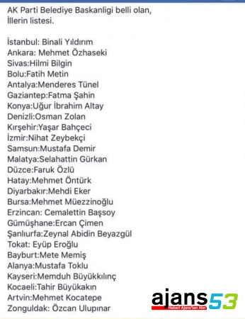 Ak Parti'nin yarın açıklayacağı büyükşehir ve bazı illerdeki adaylarının kimler olacağı sızdırıldı.