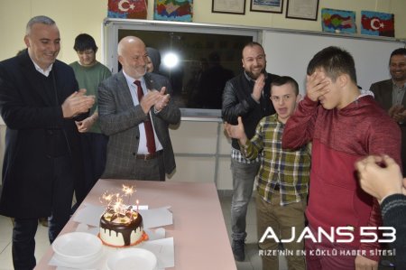 Kahya, beraberindekilerle birlikte Ardeşen Mesleki Teknik Anadolu Lisesine ziyaret ederek Eren Akcanca'ya sürpriz doğum günü partisi düzenledi.