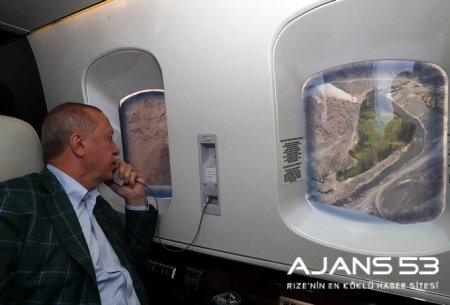 Erdoğan, konuşmasından önce ilçede yapımı devam eden Yusufeli Barajı ve toplu konut alanını helikopterden inceledi.