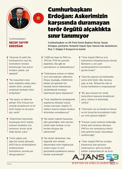 Cumhurbaşkanı ve AK Parti Genel Başkanı Recep Tayyip Erdoğan, Yenişehir Kapalı Spor Salonu'nda düzenlenen, partisinin Rize 7. Olağan İl Kongresi'ne katıldı, buradan Aksaray-Eskişehir-Konya 7. Olağan il kongrelerine de canlı bağlandı.