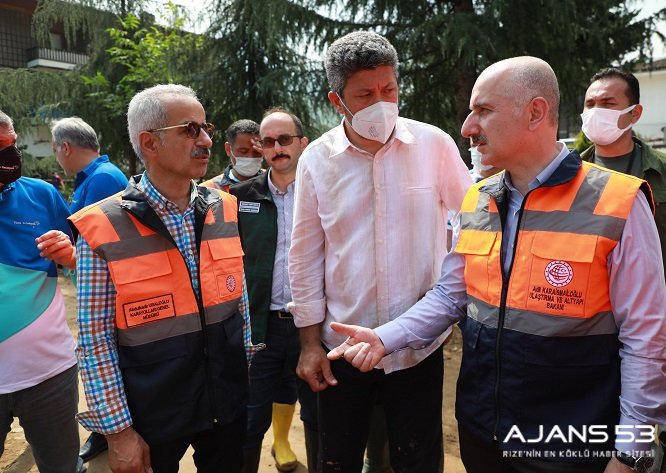 Bakan Karaismailoğlu, Rize'nin Güneysu ilçesinde selden hasar gören bölgedeki incelemelerinin ardından gazetecilere, olayın ilk saatlerinden itibaren bölgede olduklarını ve olayları takip ederek müdahale ettiklerini söyledi.